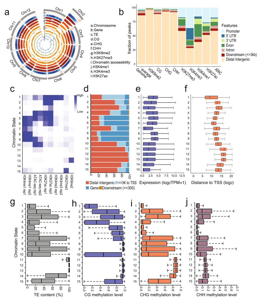 該研究以樟樹港辣椒為模型,系統(tǒng)揭示了辣椒在全基因組范圍內(nèi)的表觀特征,并在此基礎(chǔ)上推測包括啟動(dòng)子和增強(qiáng)子在內(nèi)的瞬時(shí)調(diào)控元件。研究發(fā)現(xiàn),辣椒啟動(dòng)子主要由H3K4me3,?H3K27ac和開放染色質(zhì)共同修飾,而增強(qiáng)子的特征為開放染色質(zhì)。在此基礎(chǔ)上,該研究對生長發(fā)育以及脅迫響應(yīng)的調(diào)控元件進(jìn)行了挖掘,并對部分元件進(jìn)行實(shí)驗(yàn)驗(yàn)證。此外,該研究報(bào)道了辣椒基因組基因間區(qū)H3K4me1H3K27me3共同修飾的區(qū)域,推測為暫時(shí)未表達(dá)(poised)的調(diào)控元件,其具體分子功能有待驗(yàn)證。