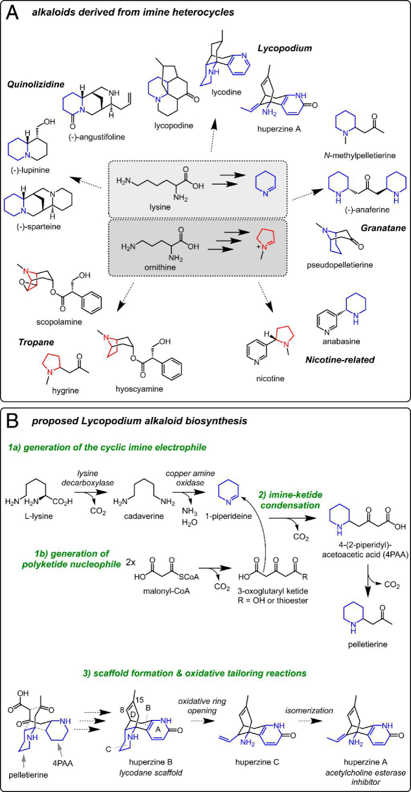 植物合成了許多能影響哺乳動(dòng)物中樞神經(jīng)系統(tǒng)的小分子化合物,成為治療神經(jīng)系統(tǒng)疾病藥物先導(dǎo)的重要來(lái)源。一些重要神經(jīng)活性植物代謝物是賴氨酸衍生的生物堿,但植物合成這類化合物的機(jī)制在很大程度上仍未被闡明。為了更好地理解植物如何合成這些代謝物,作者團(tuán)隊(duì)聚焦于傳統(tǒng)草藥石松(Club moss)Phlegmariurus tetrastichus中石松生物堿(Lycopodium alkaloids)的生物合成研