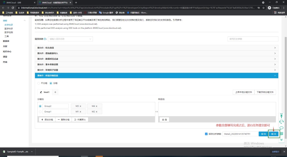 注: 任務(wù)不要重復(fù)多次提交,一次建議只運(yùn)行一個(gè)主流程任務(wù),多任務(wù)并行會(huì)導(dǎo)致卡頓,以至運(yùn)行失敗。一般正常任務(wù) 一天之內(nèi)能夠分析完成,如一天之后還沒運(yùn)行完成,可能就是任務(wù)失敗了,需要聯(lián)系后臺(tái)人員查看報(bào)錯(cuò)原因處理。