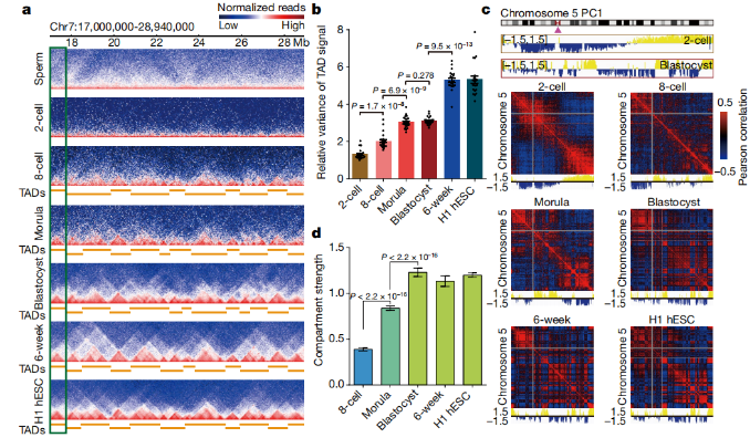 高質量的參考基因組使研究人員直接通過比較基因組就能鑒定大的結構變異成為可能。發(fā)現(xiàn)有170.2 Mb的基因組序列被鑒定為G. hirsutum和G. barbadense之間的倒位,包括120.4 Mb的At亞基因組和49.8 Mb的Dt在A06染色體中發(fā)現(xiàn)了4個大的倒位變異,包括3個染色體臂內倒位(in1, in3 and in4)和1個染色體臂間倒位(in2),通過Hi-C數(shù)據在斷點周圍離散的染色質相互作用(圖2a),突出了Hi-C技術識別大規(guī)模染色體重排的優(yōu)勢。光學圖(BioNano optical maps)譜數(shù)據進一步支持了這些反轉斷裂位點(圖2b)。