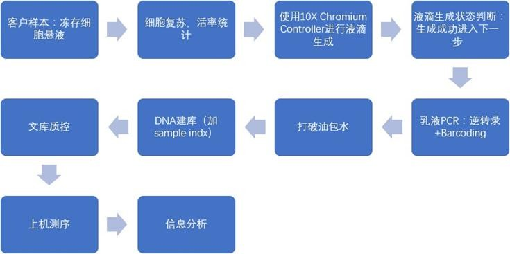 單細(xì)胞測序平臺系統(tǒng)集成:細(xì)胞分離捕獲,微流控芯片擴增,數(shù)據(jù)分析。解決單細(xì)胞測序兩大難點:單細(xì)胞分離捕獲,極低量 RNA 反轉(zhuǎn)錄擴增。整體的項目流程從樣品接收到項 目交付如下圖: