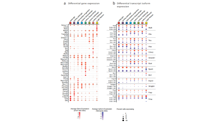 10×單細胞全長轉(zhuǎn)錄組測序利用ONT長讀長實時測序技術(shù)結(jié)合10X技術(shù)可以直接讀取反轉(zhuǎn)錄的全長cDNA,并進行快速分析。這樣能夠有效的獲取高質(zhì)量的單個RNA分子的全部序列,準(zhǔn)確辨別二代測序無法識別的同源異構(gòu)體 (isoform)、同源基因、超家族基因或等位基因表達的轉(zhuǎn)錄本。