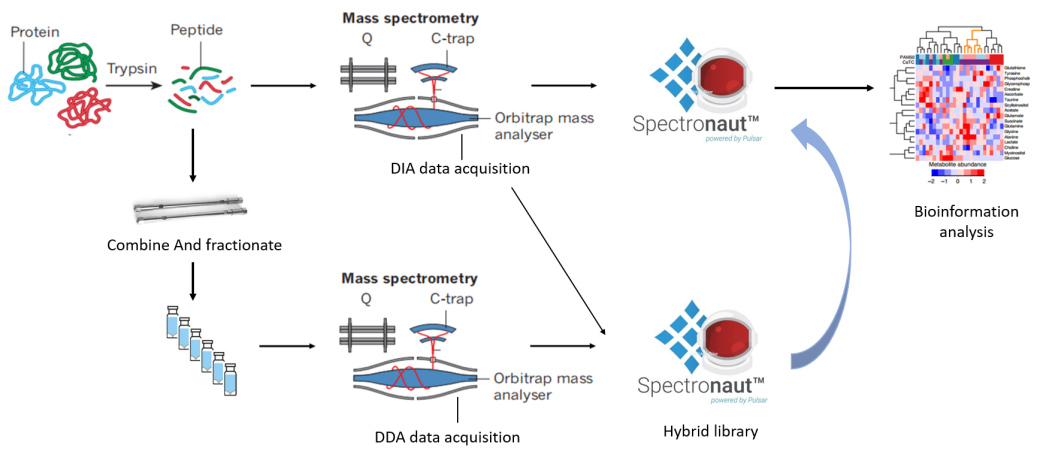 數(shù)據(jù)非依賴性的掃描模式(Date-independent acquisition,DIA)是近幾年發(fā)展的一種新的質(zhì)譜數(shù)據(jù)采集方式??梢詫①|(zhì)譜全掃描分為若干窗口,然后對(duì)每個(gè)窗口中的所有離子進(jìn)行檢測(cè)、碎裂,從而無遺漏、無差異地獲得樣本中所有離子的信息。目前流行的蛋白質(zhì)組學(xué)研究手段,如ITRAQ、TMT、Label free、SILAC采用的都是數(shù)據(jù)依賴掃描模式(Date-dependent acquisition,DDA)。相對(duì)于DDA,DIA方法具有重復(fù)性好、蛋白覆蓋率高、定量z確度高等特點(diǎn),適用于大樣本。